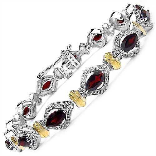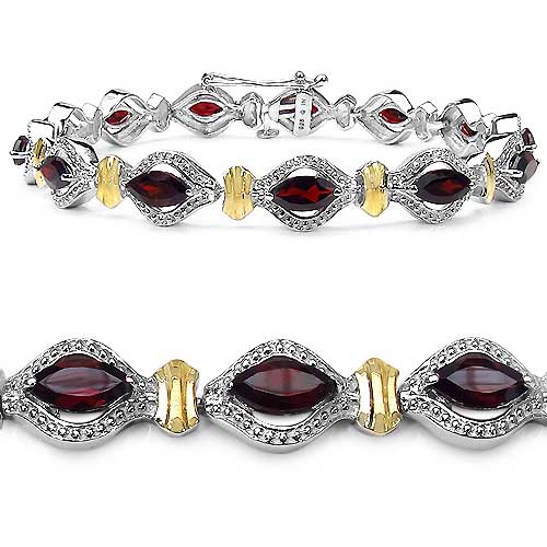 Bezauberndes elegantes Granat Armband - 925 Sterling Silber-Rhodiniert mit 10 Karat Gelbgold - 8,45 Karat