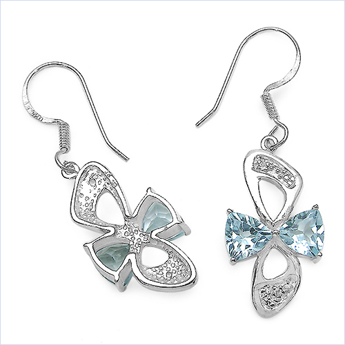 Wundervolle Blautopas/Weißtopas Ohrringe - 925 Sterling Silber- Rhodiniert in 5,06 Karat