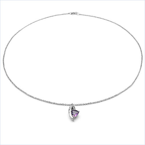 Collier/Halskette mit Diamant/ Amethyst - Anhänger - 925 Sterling Silber-Rhodiniert 0,48 Karat