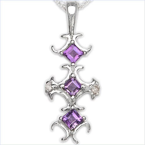 In diesem wundervollen Anhänger, mit 3 Amethysten und 2 weißen Diamanten, wurden die Steine
