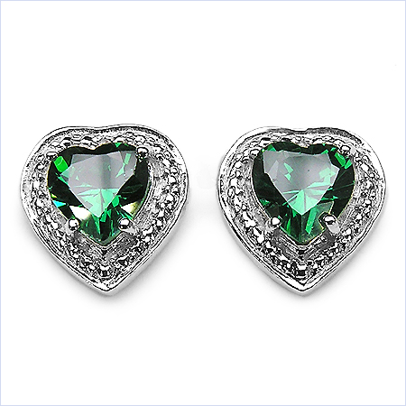 Collier/Halskette 925-Sterling Silber mit grünem Zirkonia-Herzen-Anhänger 1,25 Karat