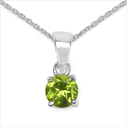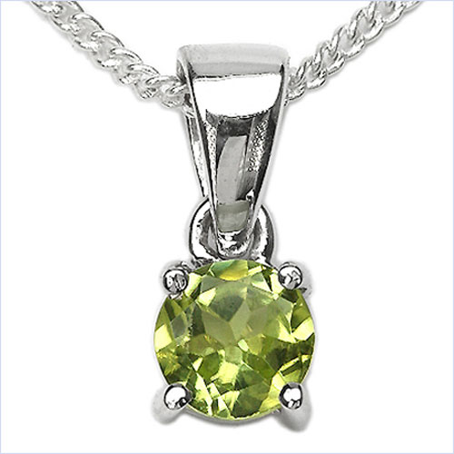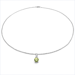 Silber Collier/Kette mit Peridot im Anhänger - 925 Sterling Silber - Rhodiniert 0,50 Karat