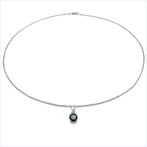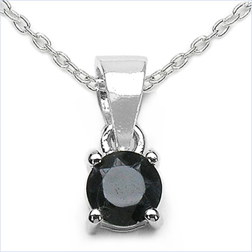 Silber Collier/Kette mit Schwarzen Saphir im Anhänger - 925 Sterling Silber-Rhodiniert 0,60 Karat