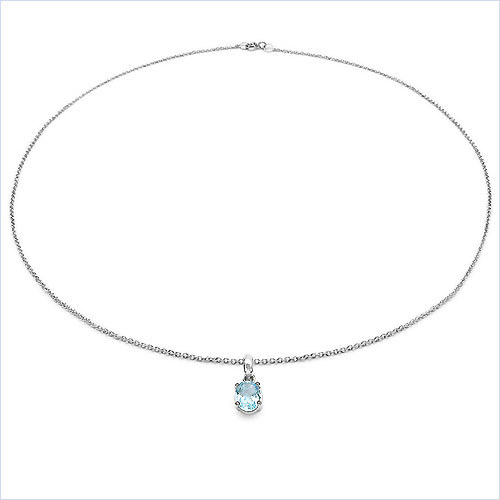 In diesem hübschen Collier mit Anhänger ist ein 9,00 x 7,00 mm großer ovaler Blautopas perfekt