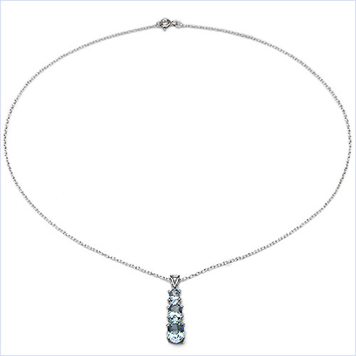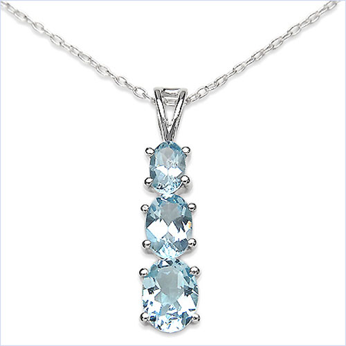 Collier/Halskette mit 3 ovalen Blautopas als Anhänger-925 Sterling Silber-Rhodiniert-in 3,25 Karat