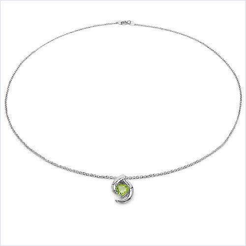 Collier/Halskette mit Peridot - Anhänger - 0,70 Karat - 925 Sterling Silber-Rhodiniert