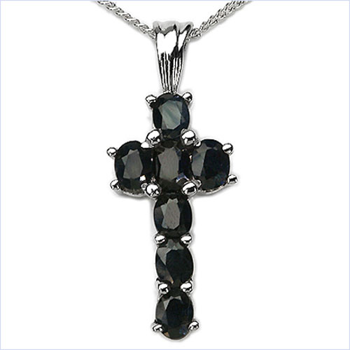 In diesem aussergewöhnlichen Collier mit Kreuz - Anhänger wurden 7 schwarze Saphire perfekt eingefasst.