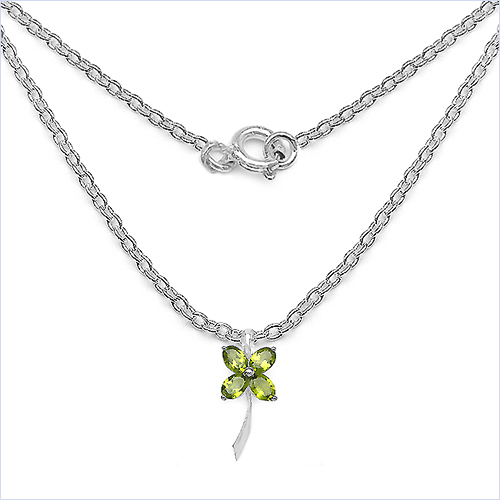 Collier/ Halskette mit großer Peridot Blume/Kleeblatt als Anhänger - 925 Sterling Silber - Rhodiniert 3,40 Karat