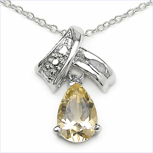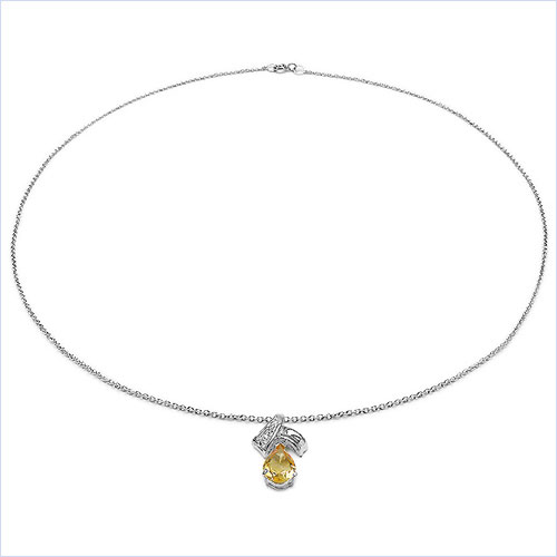 Collier/Halskette mit Tropfen - Citrin (Sonnenstein) - Anhänger - 925 Sterling Silber-Rhodiniert in 1,10 Karat
