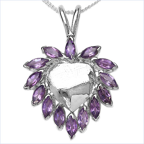 In diesem aussergewöhnlichen Collier mit Amethyst wurden 14 Edelstein, angeordnet in Herzform, perfekt eingefasst.
