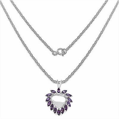 Silber Collier/Kette mit Amethyst - Anhänger - 925 Sterling Silber-Rhodiniert 2,10 Karat