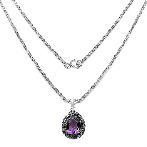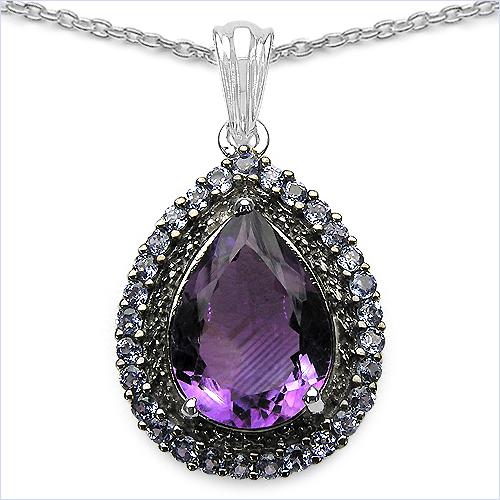 Großer Amethyst/Tansanit - Tropfen Anhänger - 925 Sterling Silber - Rhodiniert - 30 Edelsteine 9,60 Karat