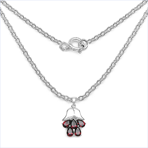 Collier/Halskette mit Granat - Blüten - Anhänger - 925 Sterling Silber-Rhodiniert in 2,25 Karat