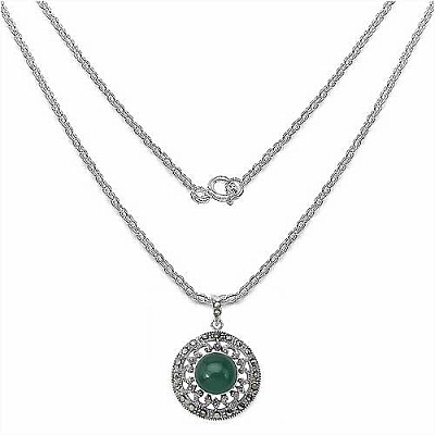 Collier/Kette Anhänger mit grünem ONYX/Markasit (Pyrit)- 925 Sterling Silber - Rhodiniert
