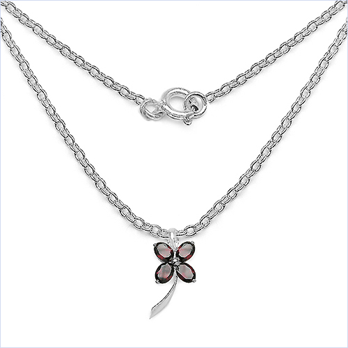 Collier/ Halskette mit großer Granat Blume/Kleeblatt als Anhänger