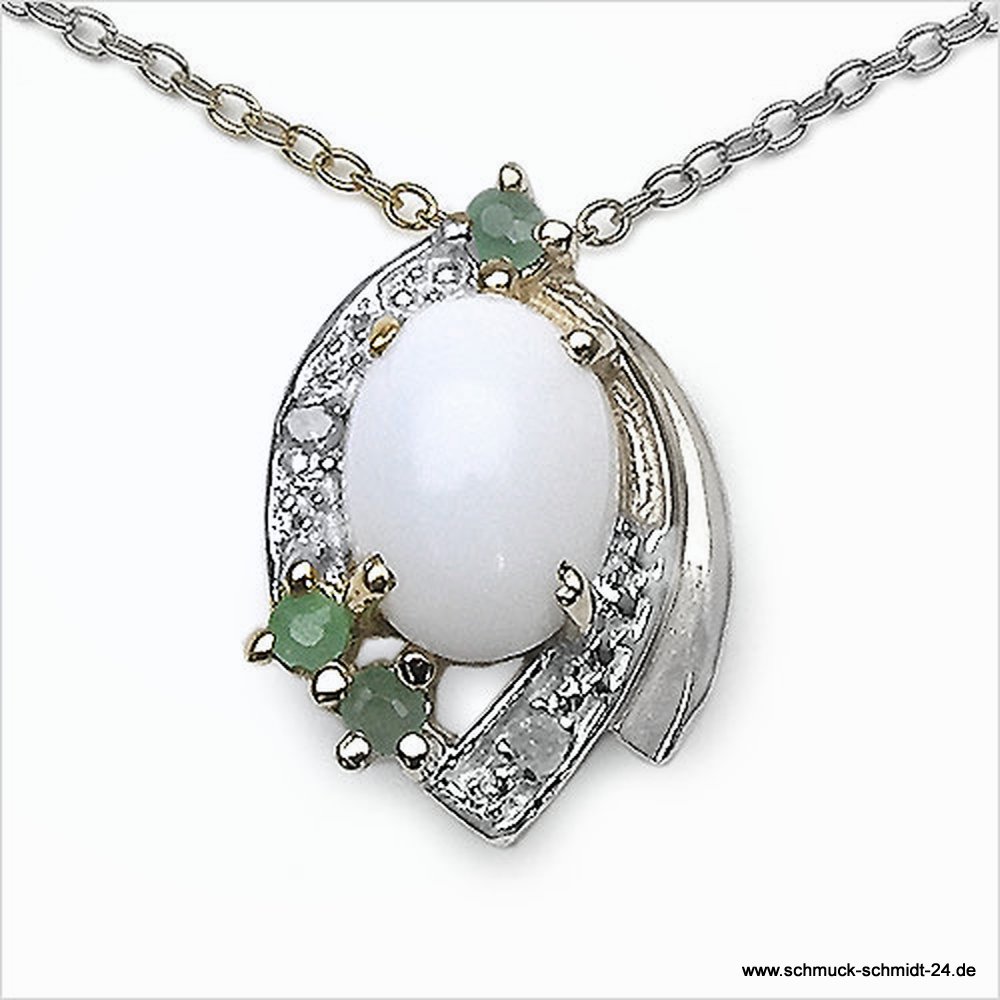 Collier / Kette mit Opal - Smaragd (Emerald) - Anhänger - 1,14 Karat - 925 Sterling Silber-Rhodiniert