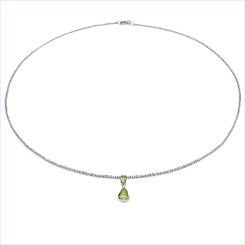Collier/ Halskette mit Peridot - Anhänger - 925 Sterling Silber - Rhodiniert 0,80 Karat