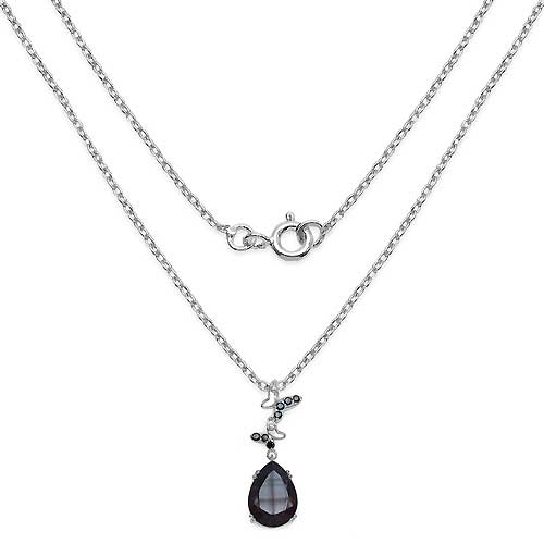 Collier/Kette mit Rauchquarz/Schwarzem Spinell-Anhänger-Schmetterlinge -7,54 Karat