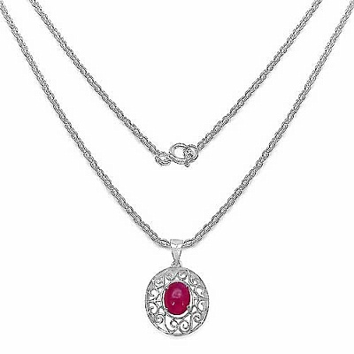 Collier/Halskette mit Rubin - Anhänger - 925 Sterling Silber - Rhodiniert in 2,51 Karat