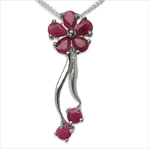 Collier/Halskette mit Rubin - Blume - Anhänger - 925 Sterling Silber-Rhodiniert 1,10 Karat