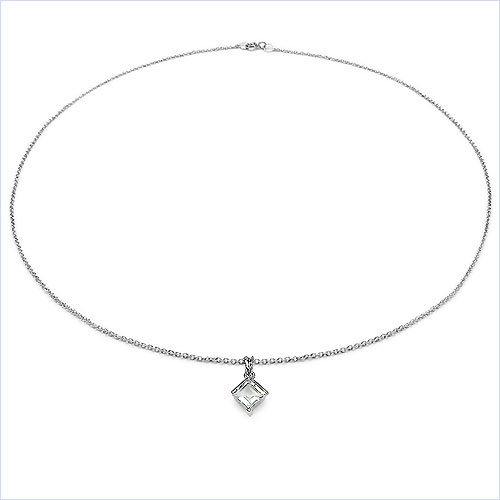 In diesem chic`en Collier mit Anhänger in Quadratform wurde ein 7 mm großer Smaragd perfekt eingefasst.