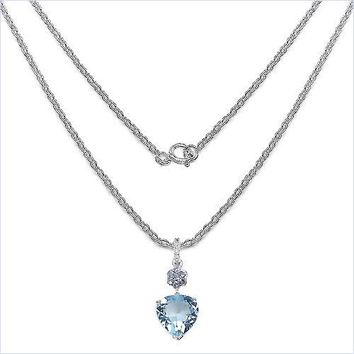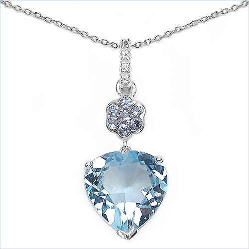 Collier/Kette mit Blautopas / Tansanit / Weißtopas-Anhänger in 3,68 Karat - in feinstem 925er Sterling Silber Rhodiniert
