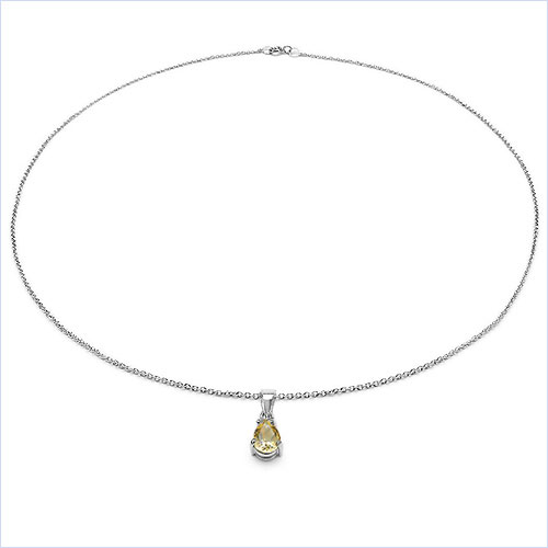 Collier/Kette mit Tropfen-Anhänger Citrin-925 Silber Rhod.0,75 Karat