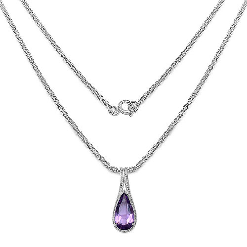 Collier/ Halskette mit großem Tropfen - Anhänger Amethyst in 5,05 Karat - 925 Sterling Silber-Rhodiniert