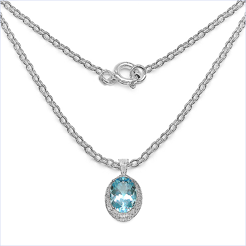 In diesem einzigartigem Collier mit Anhänger ist als Hauptstein ein 18 x 13 mm großer Blautopas