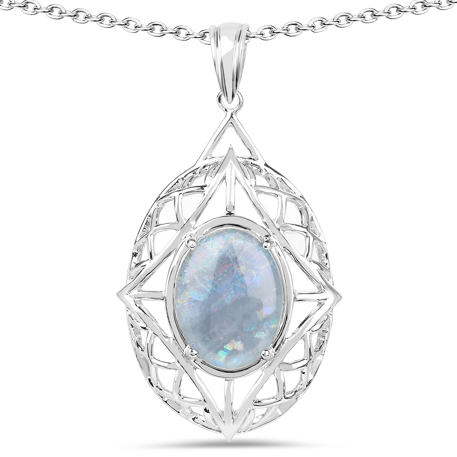 Collier mit Medaillion - Anhänger Pinfire-Opal (Welo-Opal) in feinstem 925er Sterling Silber Rhodiniert - 4,85 Karat