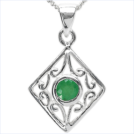 In diesem romantischen Collier mit Anhänger wurde der Smaragd eingefasst in feinstem 925
