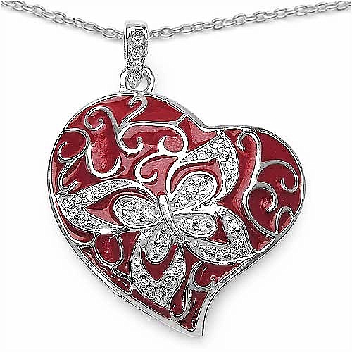 Collier/Kette mit rotem Emaillie-Herz-925 Sterling Silber Rodiniert-0,34 Karat