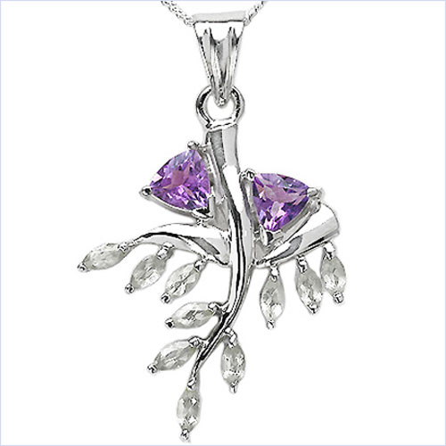 Designer Collier/Halskette mit Amethyst / White Topas - Anhänger - 925 Sterling Silber - Rhodiniert 2,60 Karat