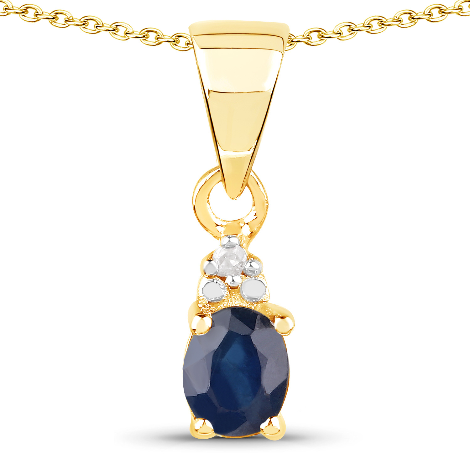 Diamant/Blue Saphir-Anhänger aus Gelbgold in 10 Karat.