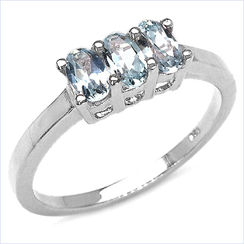 In diesem edlen Ring wurde drei 5 x 3 mm große, ovale Blautopas verarbeitet.