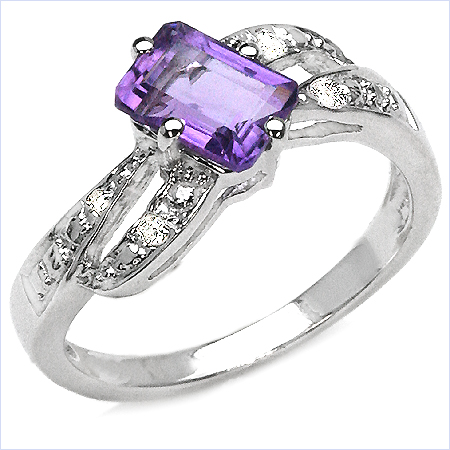 Charmanter Diamant - Amethyst - Ring - 925 Sterling Silber - Rhodiniert 1,23 Karat