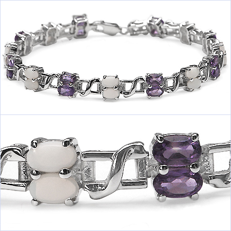 Bezauberndes, edles Amethyst-Opal-Armband in 6,34 Karat (30 Edelsteine) - 925 Sterling Silber-Rhodiniert -