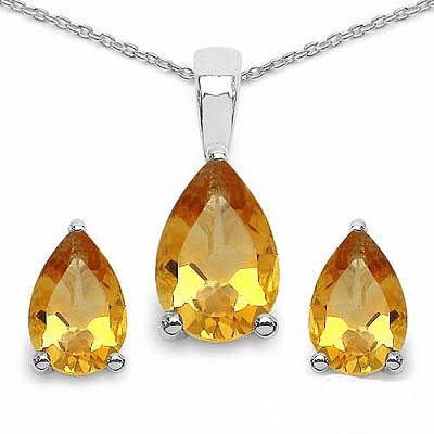 Tropfen Schmuck - SET, 4 - teilig Citrin Edelsteine 2,60 Karat - 925 Sterling Silber - Rhodiniert