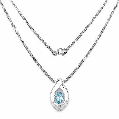 Edles Collier/Halskette mit Blautopas-Anhänger-925 Sterling Silber-Rhodiniert 0,53 Karat