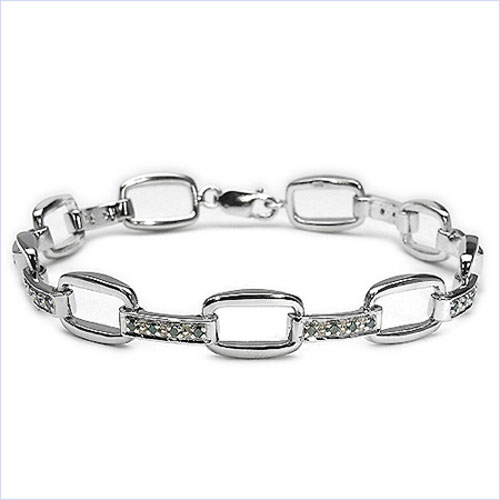 In diesem edlen Armband aus feinstem 925 Sterling Silber wurden 32 dunkelgrüne Diamanten verarbeitet.
