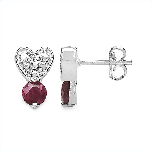 Ohrringe/Ohrstecker Rubin-Herzen - 925 Sterling Silber- Rhodiniert - 0,83 Karat