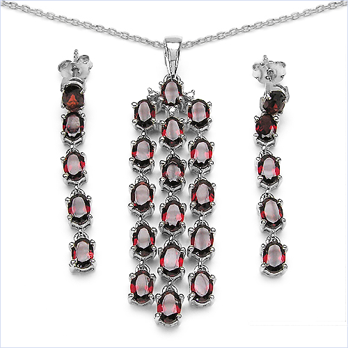 Luxurioses 4 - teiliges Schmuck - SET 26 Granat Edelsteine 16,90 Karat - 925 Sterling Silber - Rhodiniert