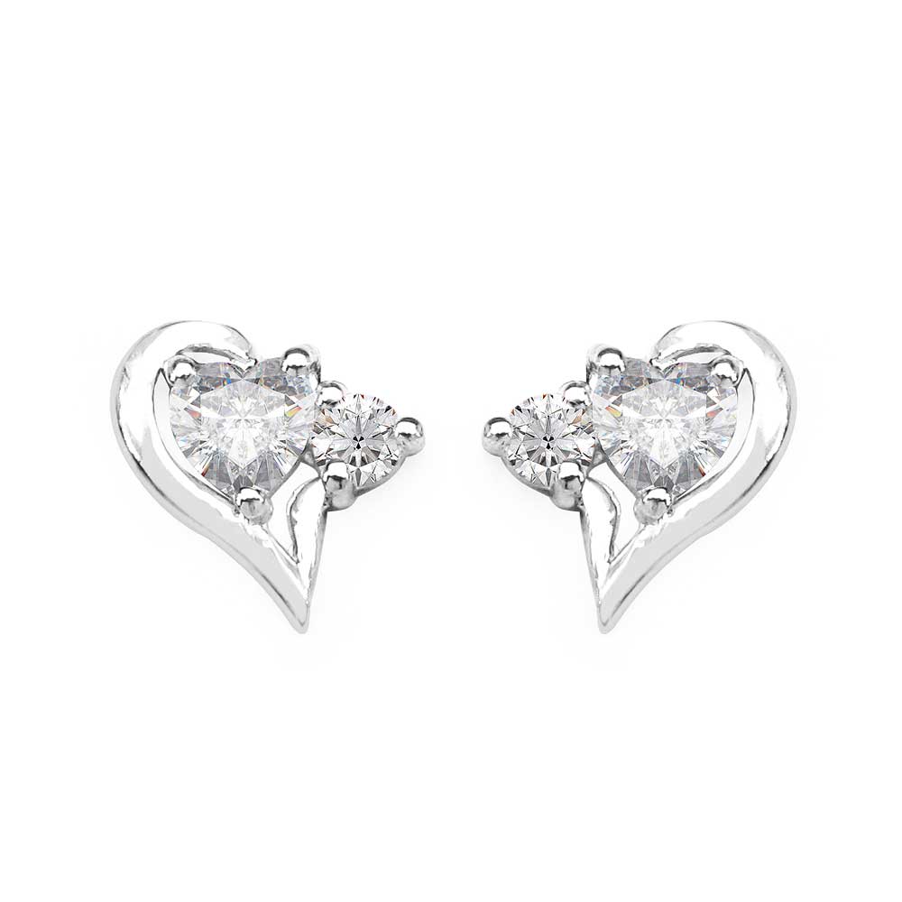 In diesen eleganten Herzen Ohrsteckern wurden zwei weiße Zirkonia, einer im Herzschliff und einer im Rundschliff perfekt eingefasst.