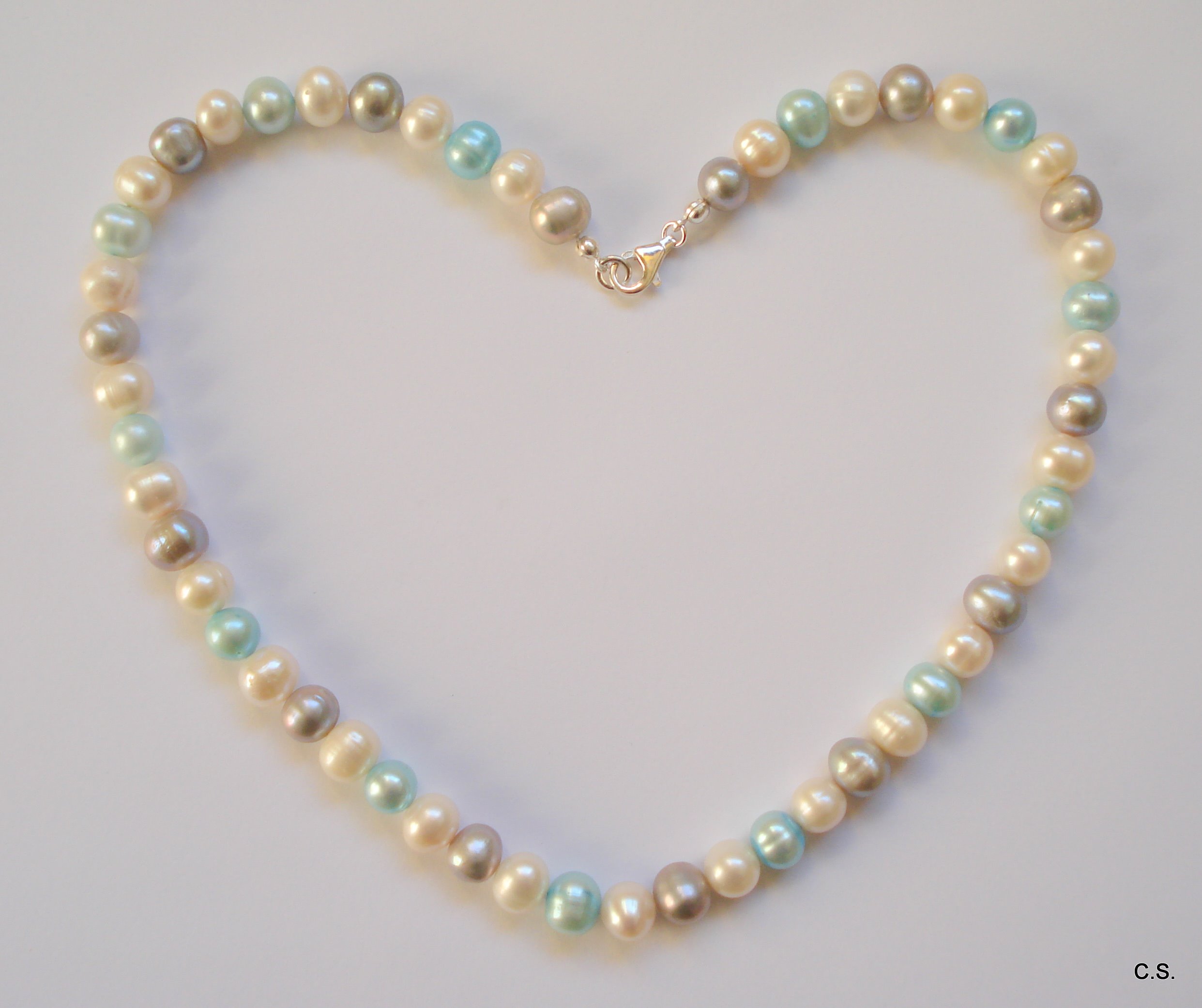 Das edle glänzend schimmernde Perlencollier ist ein Meisterstück, die Süßwasserzuchtperlen in einer Größe