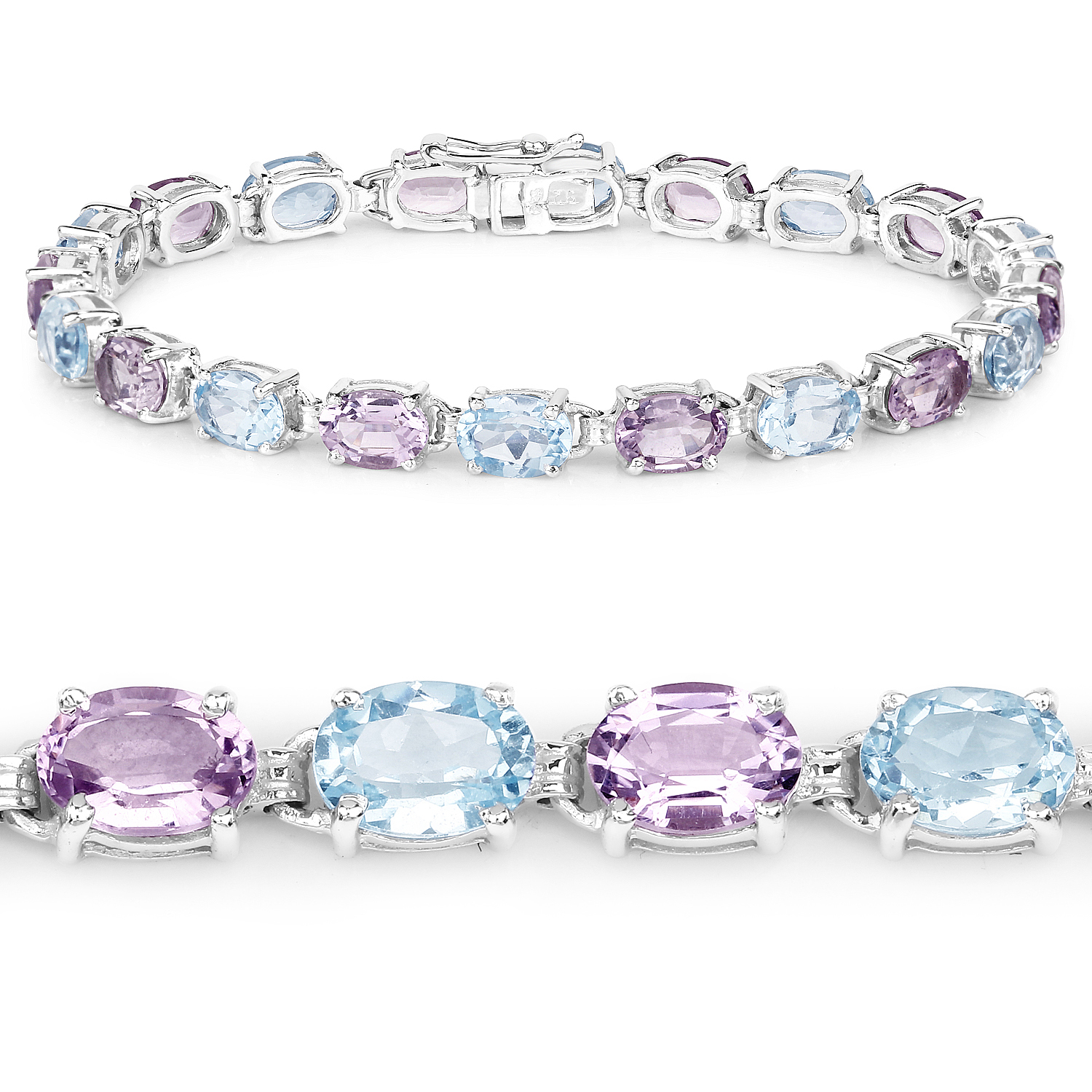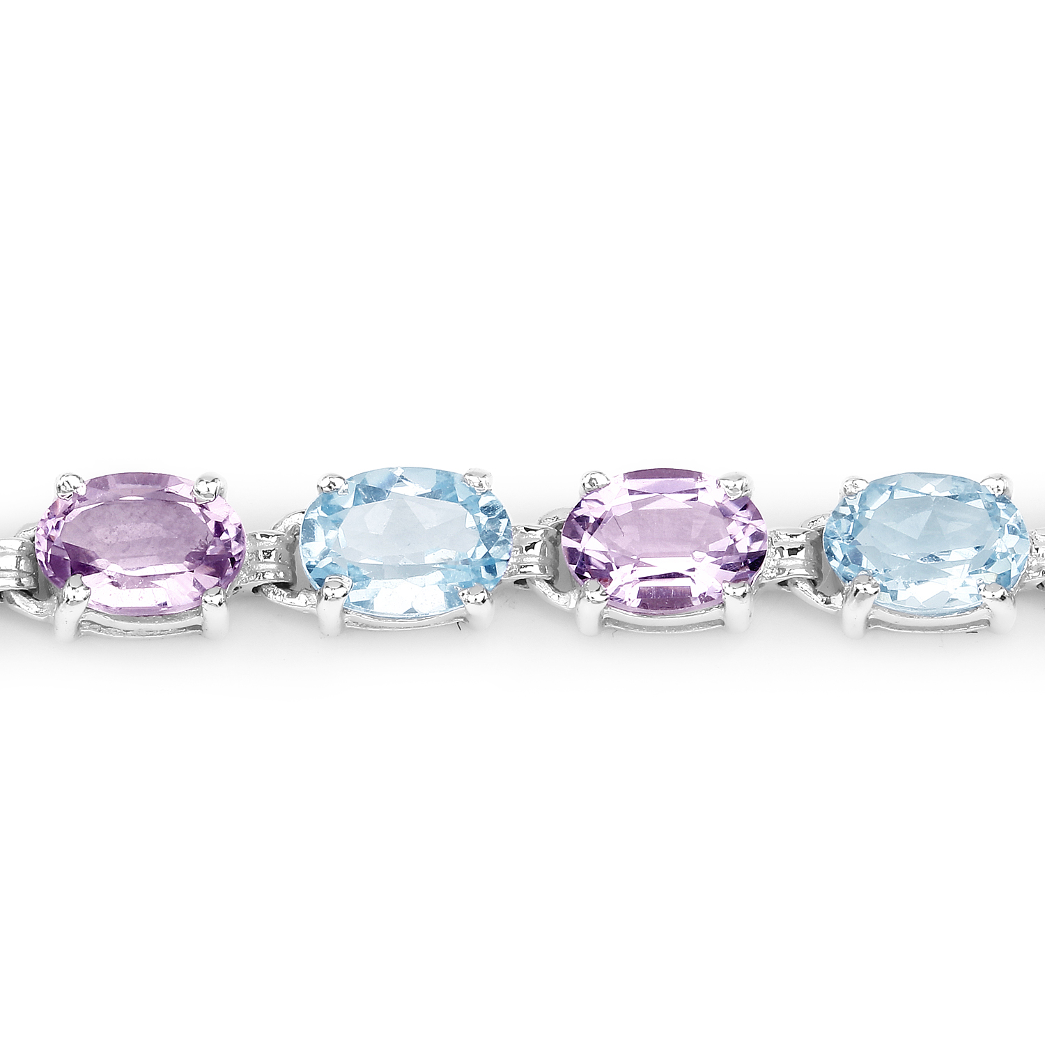 Blautopas-Pink Amethyst-Armband 925 Silber-Rhodiniert-10,48 Karat-20 Edelsteine