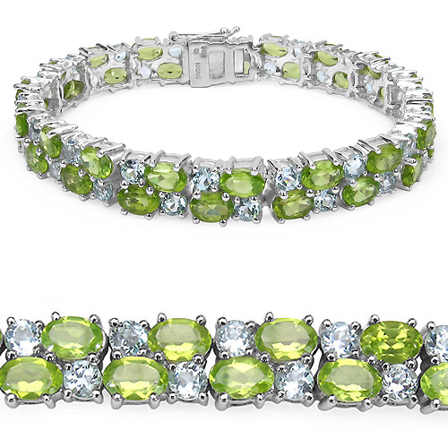 Bezauberndes Edles Peridot/Blautopas Armband - 925 Sterling Silber-Rhodiniert - 72 Edelsteine 22,68 Karat