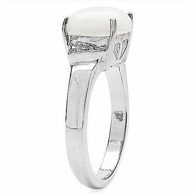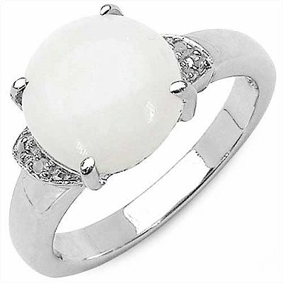 Weißer Milch-Opal / Diamant - Ring - 925 Sterling Silber - Rhodiniert 6,21 Karat