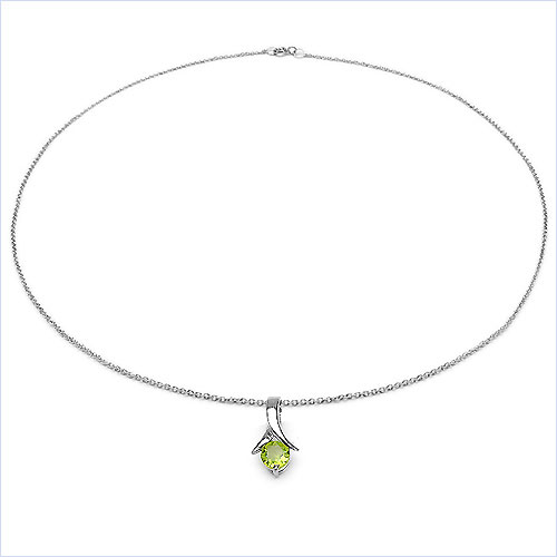 Collier/Halskette mit Peridot - Anhänger - 925 Sterling Silber - Rhodiniert 0,90 Karat