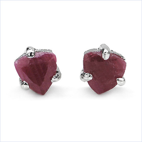 In diesen hübschen Ohrsteckern sind jeweils 1 dreieckiger roter Rubin perfekt eingefasst.