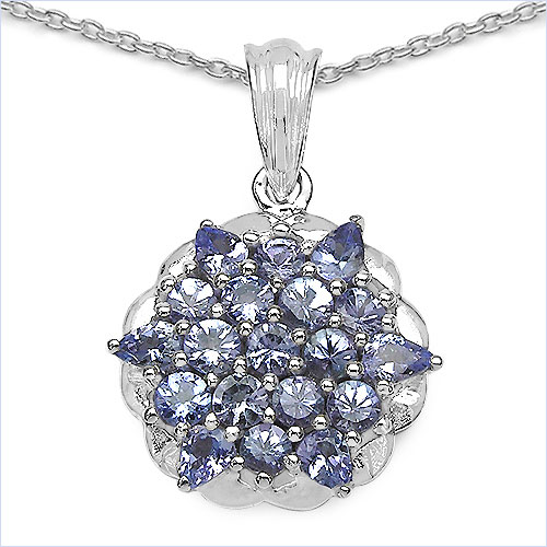 Collier/Halskette mit Tansanit - Anhänger - 925 Sterling Silber - Rhodiniert mit 19 Edelsteinen besetzt 2,14 Karat
